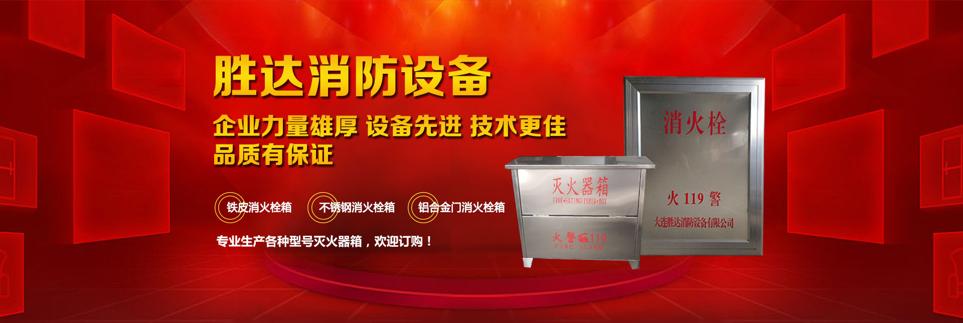 大連勝達消防設備有限公司本公司企業(yè)力量雄厚、設備先進,生產(chǎn)的所有消防產(chǎn)品均符合國家GB14561—J標準,品質(zhì)有保證。我公司地理位置優(yōu)越,位于大連市甘井子區(qū)西北路847號交通便捷,公司專業(yè)生產(chǎn)各種型號滅火器箱、消火栓箱、鐵皮消火栓箱、不銹鋼消火栓箱、鋁合金門消火栓箱。消火栓箱系列產(chǎn)品,全部按照國家標準和行業(yè)標準進行生產(chǎn),并通過國家合格鑒定,得到了國家固定滅火系統(tǒng)和耐火構(gòu)件質(zhì)量監(jiān)督檢驗中心的產(chǎn)品認證和產(chǎn)品形式報告書。我們的消火栓箱系列產(chǎn)品具有外形美觀、結(jié)構(gòu)先進、開啟靈活、使用可靠、消火應急燈具標志清晰、光色好、功耗低、使用壽命長、安裝使用簡便,可廣泛應用于高層建筑和工業(yè)等一些公關場所使用。